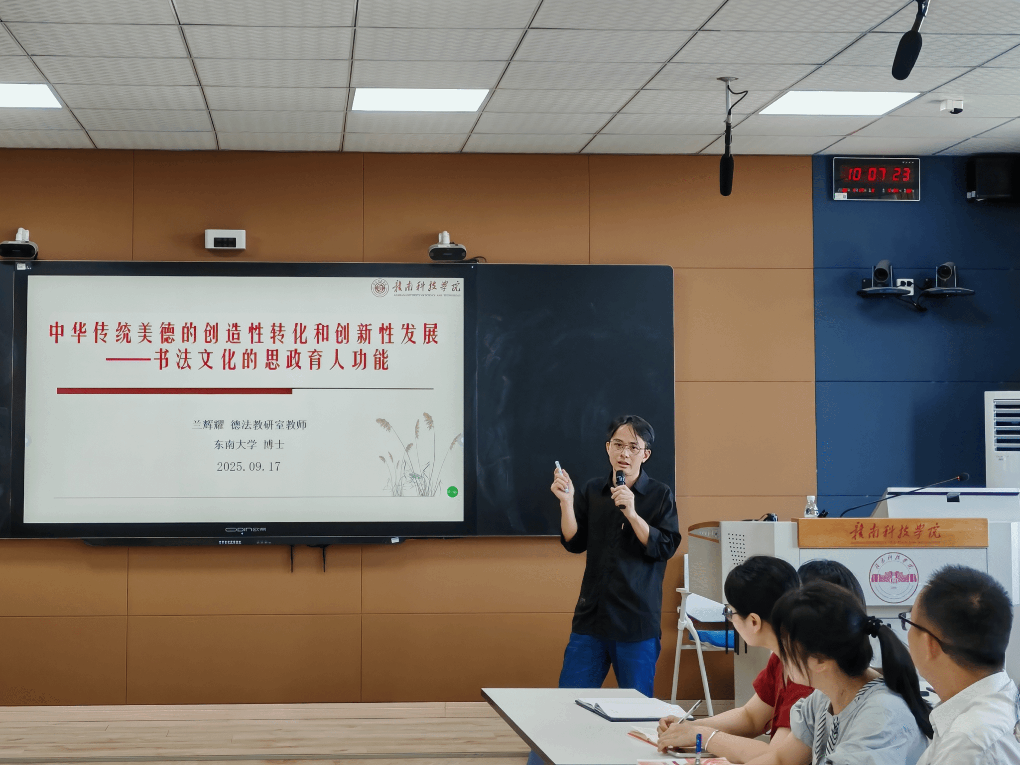为认真落实学校“一师一课”打造思政“金课”要求,9月17日,马克思主义学院《思想道德与法治》率先发力,于Z628智慧教室举办有关专题磨课会,切实提升思政课教师教学水平。活动特别邀请赣南师范大学王木林博士、邱其霖博士,赣南医科大学肖呈生副教授到场指导。这只是该院积极探索打造高精尖水平的思政“金课”的一个缩影。