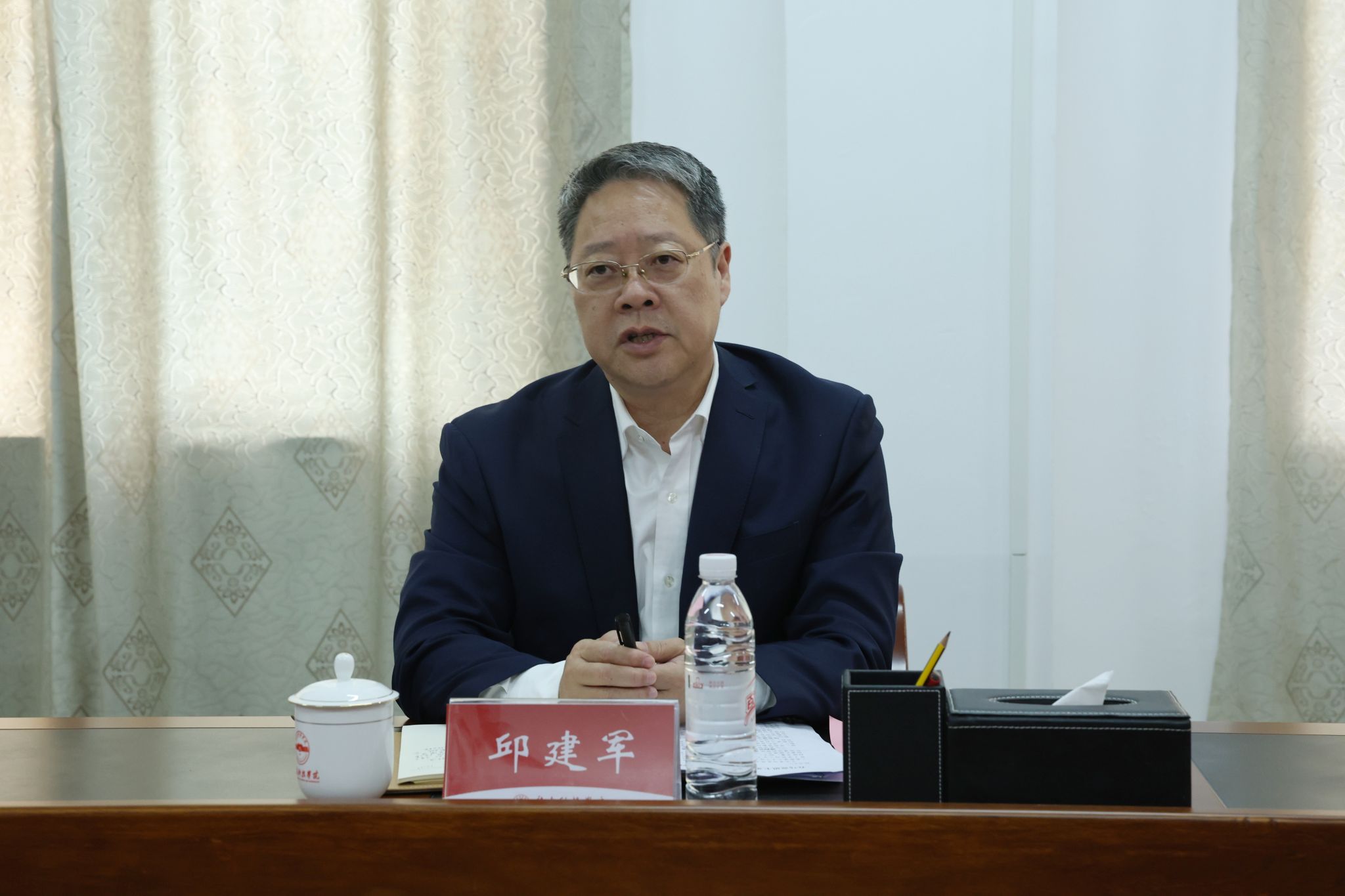 邱建军在听取汇报和发言后指出,当前学校思政课专职教师数量达到国家要求,但在职称结构、学历层次等方面仍需持续优化。为建强培优思政课教师队伍,切实提升思政课育人实效,他强调:一要提高站位,深化认识。思政课是落实立德树人根本任务的关键课程,思政课教师责任重大、使命光荣,要倍感珍惜,心怀感恩,奋发有为。二要精准研判,直面挑战。要加快内涵式发展,优化教师队伍结构。教师要充分发挥主观能动性,在学历提升、职称提升、能力提升上积极作为;学校、学院和教师三方应协同发力,有组织、有方向、有步骤地推进教学改革与科学研究,优化教学内容与方法,着力打造一批思政“金课”。三要精准施策,建设高素质思政队伍。要有针对性地引进教学、科研能力突出的优秀人才,充分发挥优秀教师的示范引领和传帮带作用,系统化开展教师培育工作,不断提高学生的“抬头率”“参与率”。四要科学评价,激发教师活力。要优化教师评价机制与标准,鼓励教学创新与科研探索,激发教师内生动力和发展潜能,为高素质队伍建设提供制度保障。五要全方位保障,协同建设思政队伍。强化经费保障与资源投入,推进“行走的思政课”、教学竞赛以及学术研究的开展,促进教学、科研成果的有效产出。六要规范管理,压实责任。严明教学管理和课堂纪律,引导教师以德立身、以德立学、以德施教,不断提升职业素养与综合能力,切实增强走出去、站起来的底气与竞争力。